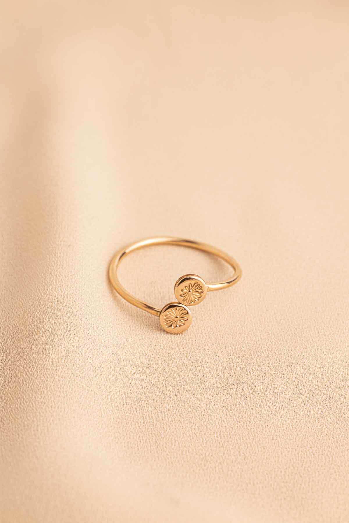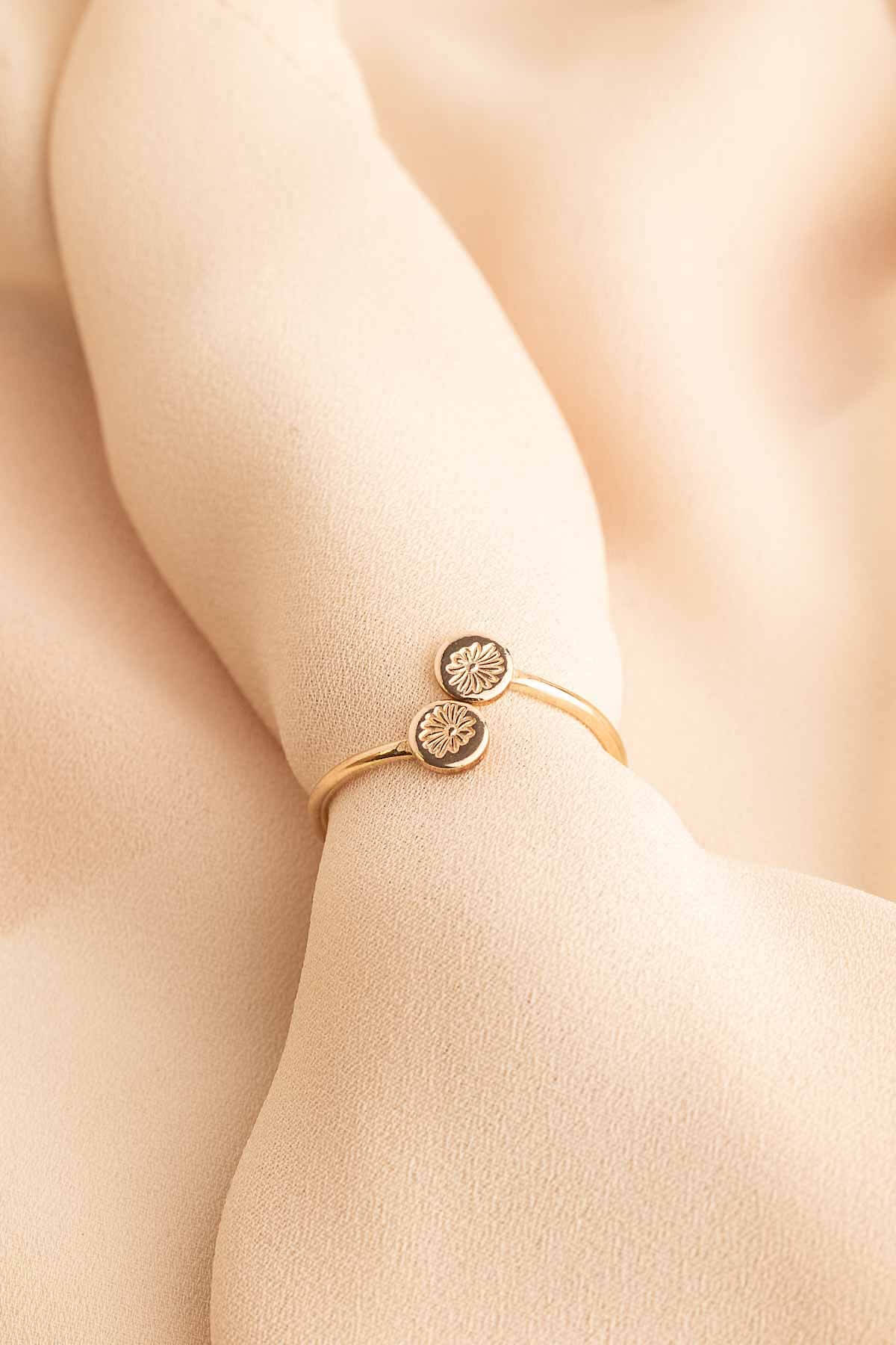 Add a touch of personal style to your look with this adjustable open ring! Hand stamped with a choice of cheerful daisies or a simple hammered finish. This lightweight ring is perfect for sprucing up an everyday look.