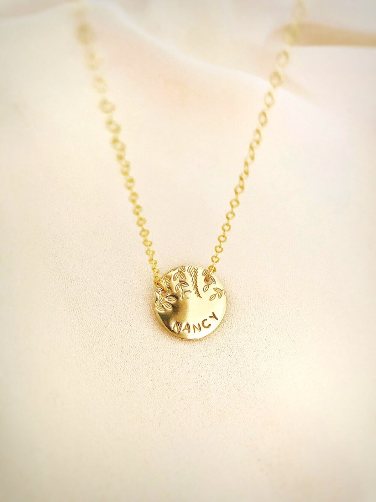 Traditionally handstamped with high-quality precious metals such as 14k goldfilled, 14k rose goldfilled or sterling silver. It is water-proof, sweat-proof, hypoallergenic, and will never turn green on your skin.