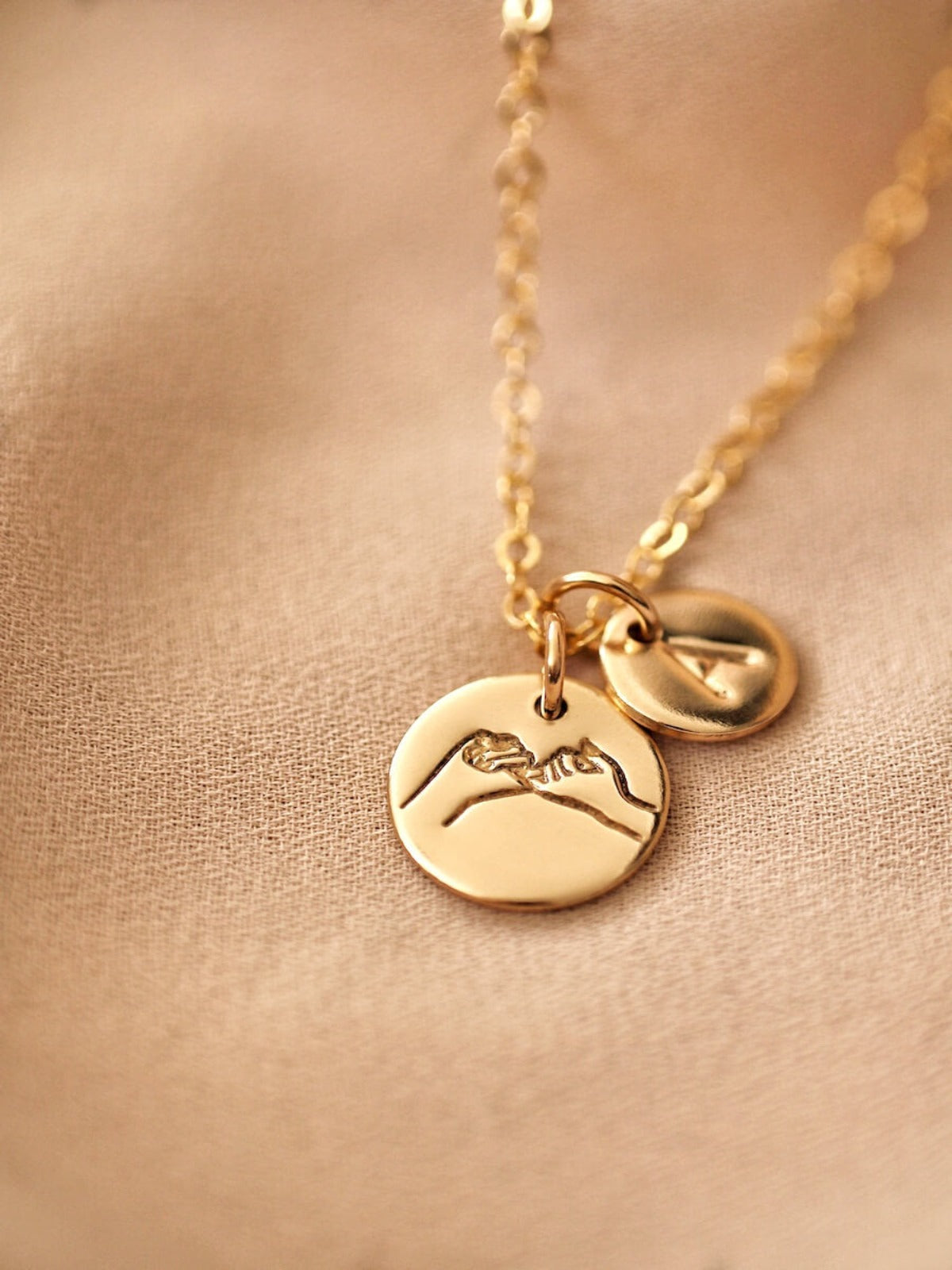 You can add more pendants to the Pinky Promise necklace personalised with initials, dates, symbols and names.