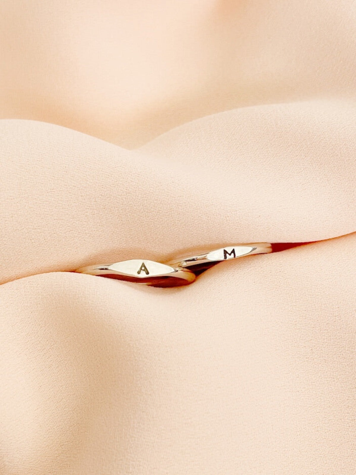 Roma rings are mini signet rings that can hide a secret personalised message for you. They are dainty enough that you can stack them up and pair them them with other stackable rings.