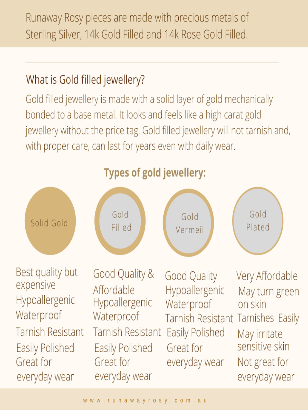 Runaway Rosy jewellery are made with 14k Goldfilled, 14k Rose Goldfilled or 925 Genuine Australian Sterling Silver.